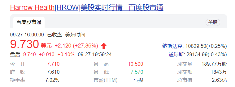 受此消息影响,Harrow公司股价上涨27.86%,目前总市值为2.63亿美元。