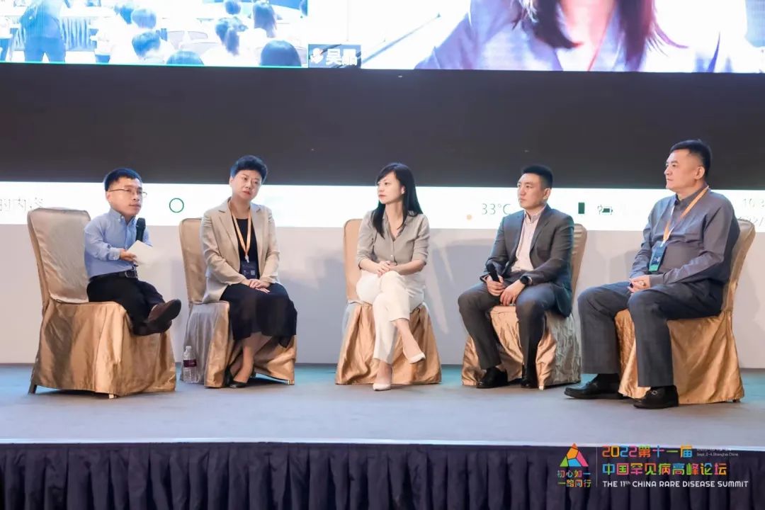 蔻德罕见病中心主任黄如方(左一)主持关于国谈“灵魂砍价”背后深意的讨论,讨论嘉宾有:赛诺菲(中国)罕见病及罕见血液病业务负责人俞蕾女士(左二)、武田中国副总裁、准入卓越部负责人张敏女士(中)、法布雷病友会副会长、法布雷国际协作网络理事徐一帆先生(右二)以及上海市卫生和健康发展研究中心主任金春林教授(右一)。