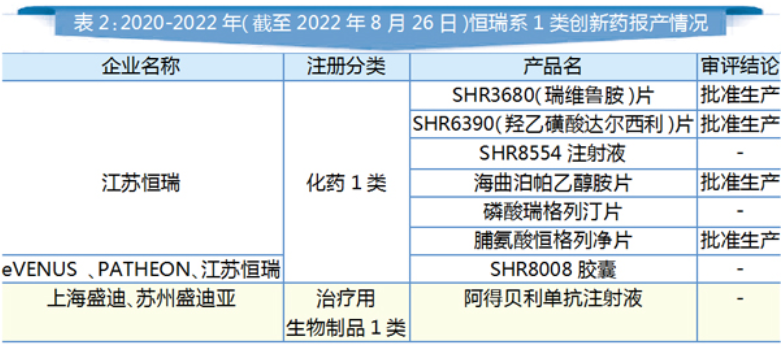 无论是申报数量还是获批数量,恒瑞系依然是当之无愧的“老大”,近三年申报了8个产品,获批了4个,以化药为主。