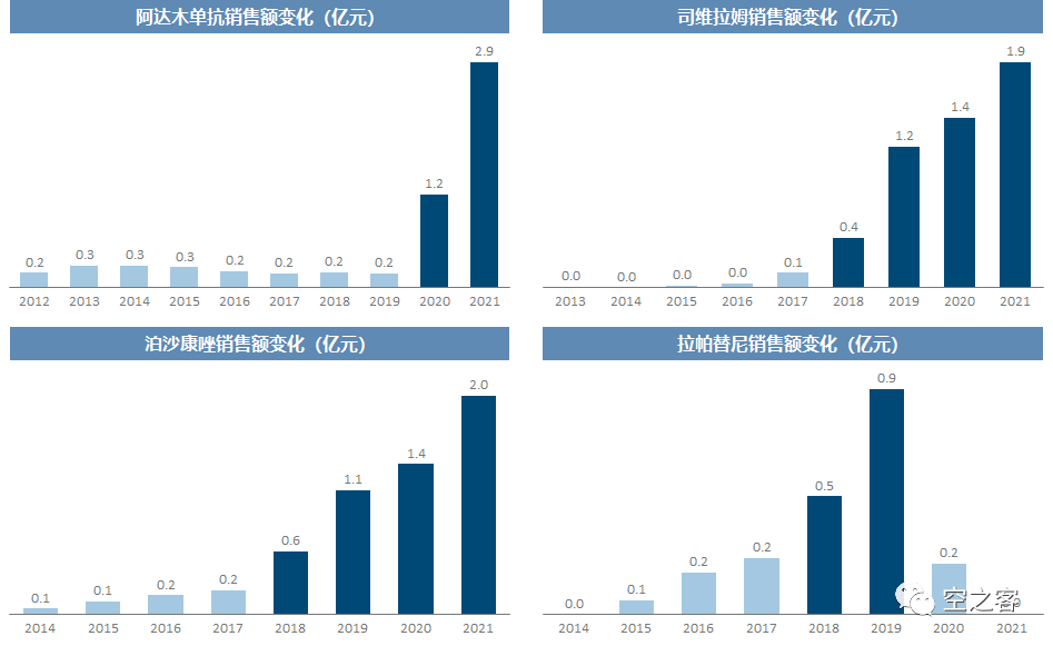 那些没有医保的情况下几乎完全卖不动的品种,只要临床价值明确,解决一定的支付问题就有可能带来非常可观的增量。最典型的就是全球药王阿达木单抗,虽然现在的销售额仍然与国际水平相去甚远,但无论如何是有了显著提升;另一个直观的自我对照就是拉帕替尼,在17年谈判成功调入目录后销售额迅速跃升,然而在19年续约失败被踢出目录后又迅速没落。