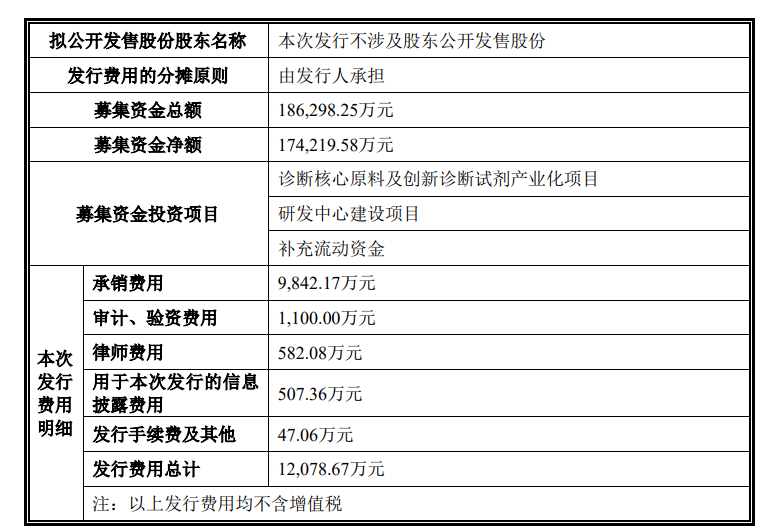 而近期,国内重组蛋白领域迎来了一家重磅企业的上市。9月29日,医药原料重组蛋白生产商近岸蛋白在上交所科创板上市。本次发行价格为106.19元/股,发行数量为1,754.3860万股,全部为新股发行,无老股转让。通过此次IPO,近岸蛋白募资总额18.6亿元,扣除将近1亿元的发行成本,净募资额17.4亿元。