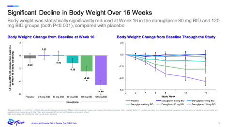 近日,辉瑞在EASD会议上宣布其在研产品Danuglipron(PF-06882961)与PF-07081532最新临床试验结果积极:与安慰剂相比,两款产品均有显著的降糖减肥效果。