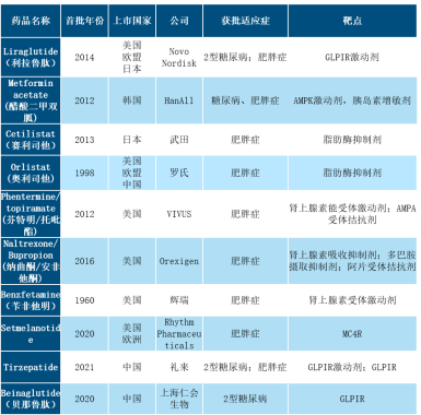 ▲目前全球肥胖症主流治疗药物一览来源:参考资料4