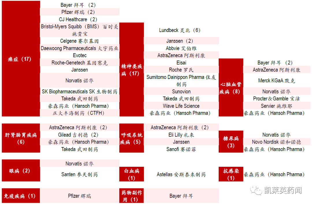 药企在AI 合作上聚焦的疾病方向