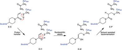 图5. 共价键抑制剂依鲁替尼抑制BTK (布鲁顿酪氨酸激酶) 示意图