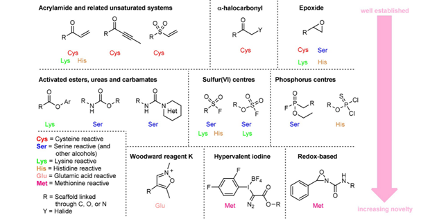 图7. 共价键药物亲电基团与受体蛋白氨基酸对应物(图片来源:ChemBioChem)