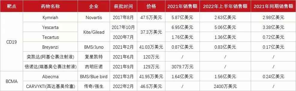 ▲ 8款上市CAR-T产品概况