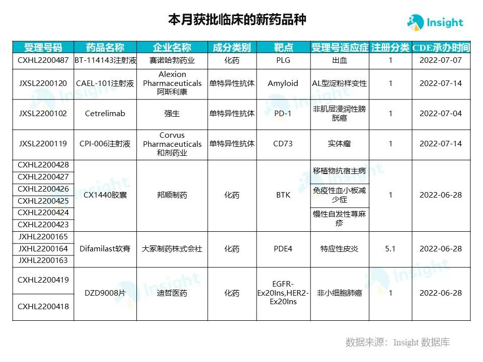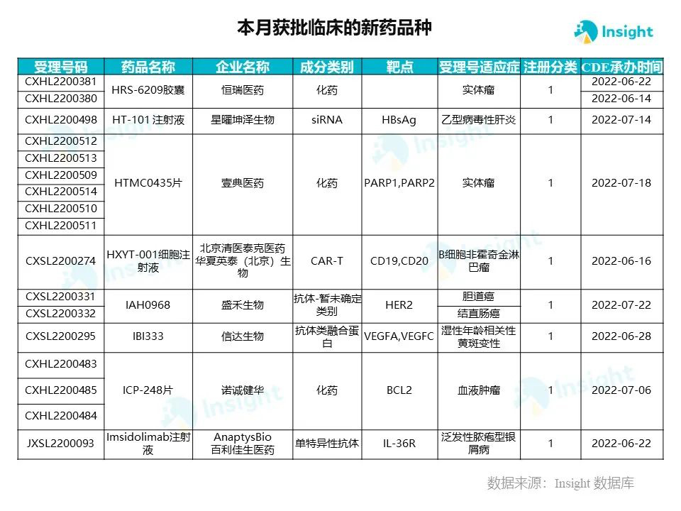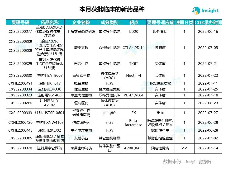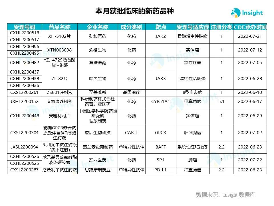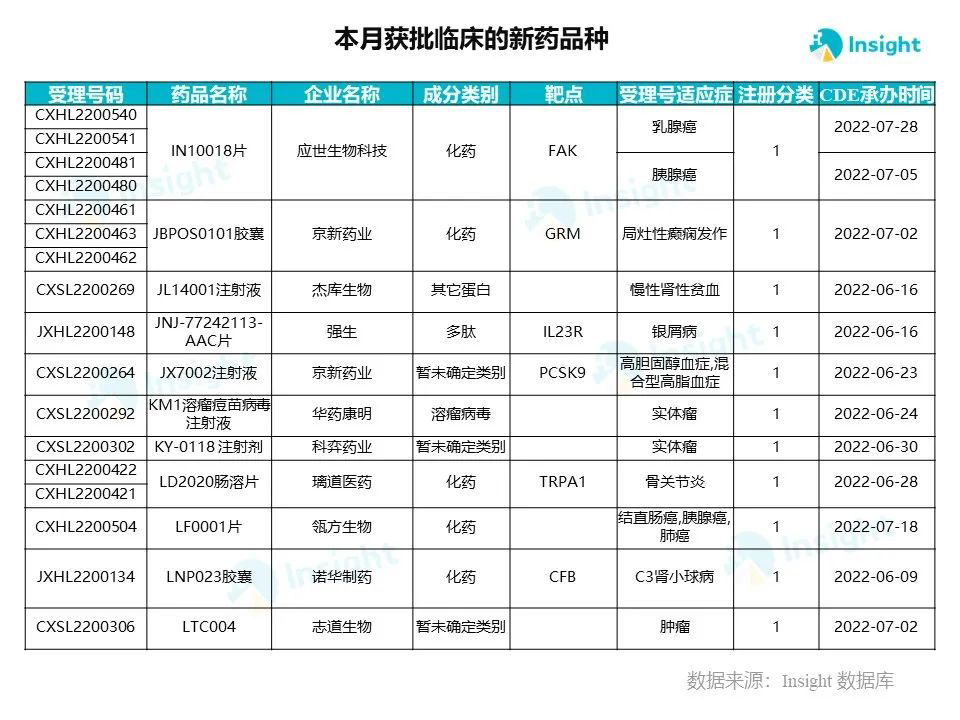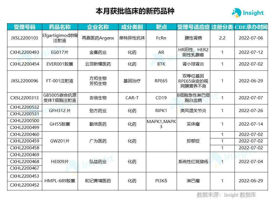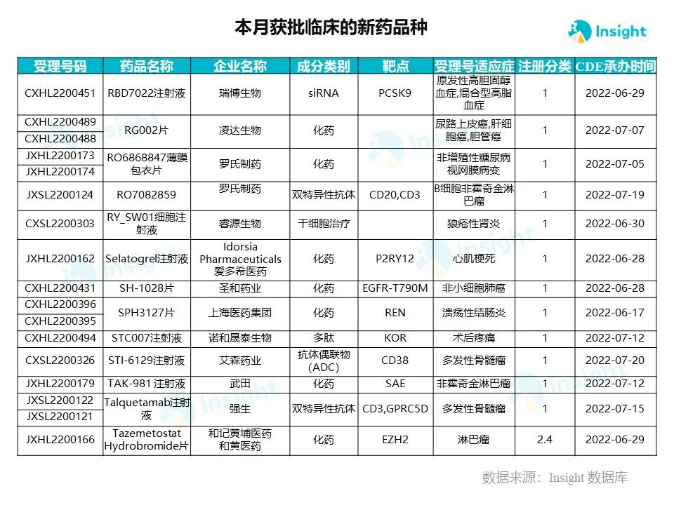 下面是本月获批临床品种的部分重点产品介绍,文章略长,可选择性阅读。