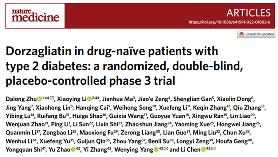 [8] Yang W, Zhu D, Gan S, et al. Dorzagliatin add-on therapy to metformin in patients with type 2 diabetes: a randomized, double-blind, placebo-controlled phase 3 trial[J]. Nature medicine, 2022, 28(5): 974-981.