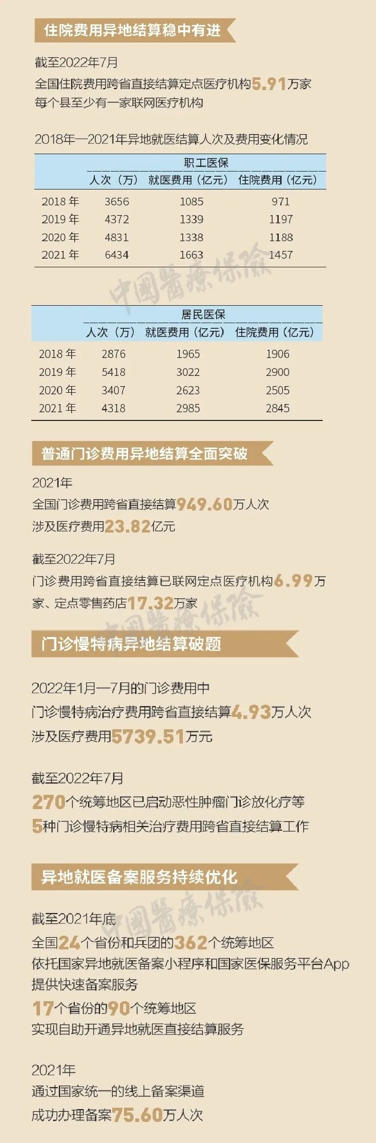 推进基本医保异地就医费用直接结算,是完善医保制度、解决群众突出关切的重要惠民举措。国家医保局持续完善相关管理政策与工作方法,解决参保群众异地就医的痛点与难点,让“跑腿”“垫支”成为历史。