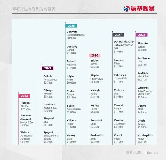 像辉瑞、诺华、礼来、百时美施贵宝等大药企都面临着陡峭的专利悬崖,都有着不小的坑需要填补。