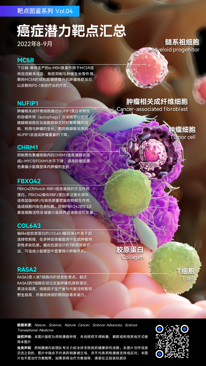 大多数癌症患者具有极大的未竟医疗需求,改善各类癌症的治疗也一直是生物产业研发的方向,而带来根本性改变的疗法常常源自于实验室的发现。药明康德内容团队为大家盘点近期在各顶尖科学期刊上所发表,具有潜力成为治疗癌症靶点的文章,以作为各界癌症疗法开发的参考!