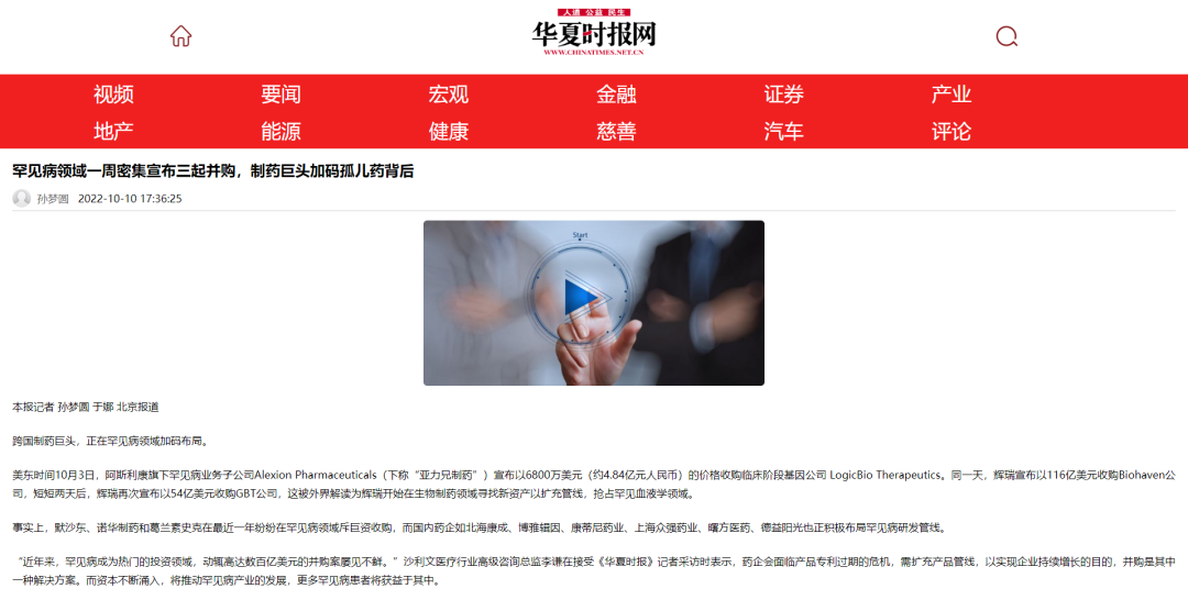 美东时间10月3日,阿斯利康旗下罕见病业务子公司Alexion Pharmaceuticals(下称“亚力兄制药”)宣布以6800万美元(约4.84亿元人民币)的价格收购临床阶段基因公司 LogicBio Therapeutics。同一天,辉瑞宣布以116亿美元收购Biohaven公司,短短两天后,辉瑞再次宣布以54亿美元收购GBT公司,这被外界解读为辉瑞开始在生物制药领域寻找新资产以扩充管线,抢占罕见血液学领域。