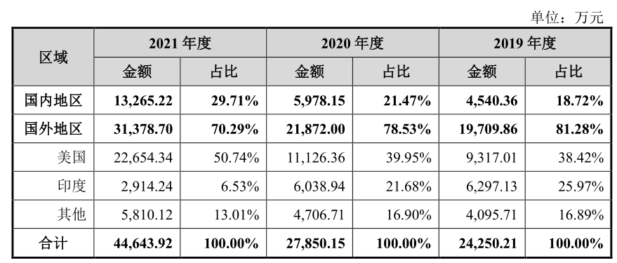 主营业务收入按地区构成情况 来源:泓博医药招股书