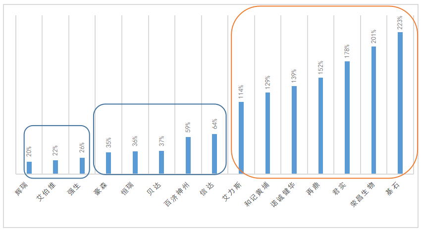 目前中国的Biotech企业仅有百济神州迈出了国际化的脚步,其他企业依然将中国作为市场主体,这势必造成这些企业难以通过药品销售达到稳定盈利。