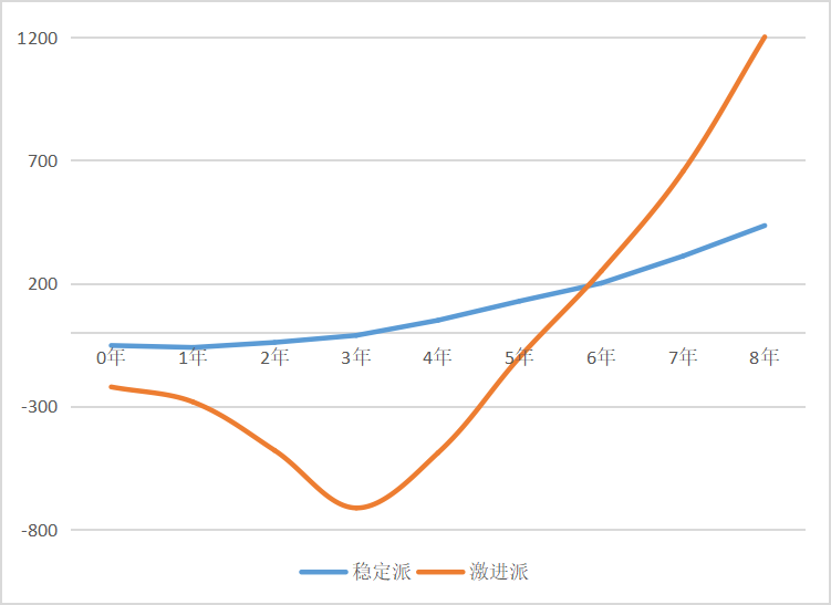 图3 美国典型自主商业化Biotech模拟净利润两种类型走势
