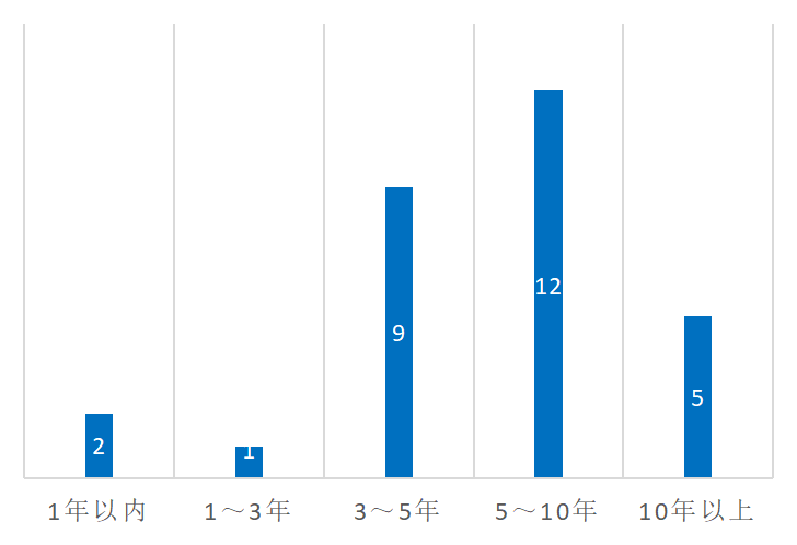 图5 国产肿瘤Me too药与原研药全球上市时间差范围对应的药品数量