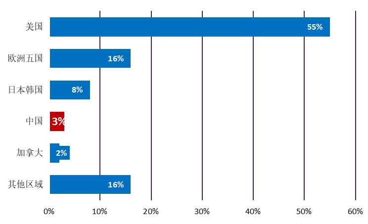 图6 2021年全球创新药销售额占比,分区域