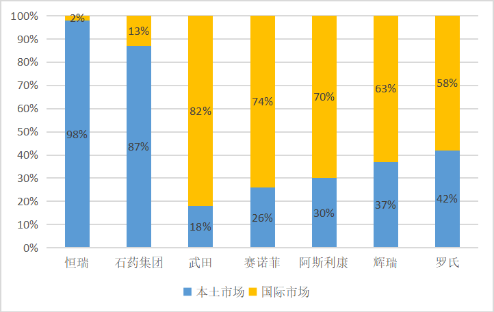 同时对于企业个体来说,只有产品走向世界才能扩大市场空间、提高回报预期,形成创新药企的可持续发展。纵观多数全球知名跨国药企均以国际市场作为自身销售收入主体,相对而言中国多数药企国际收入比例差距明显。