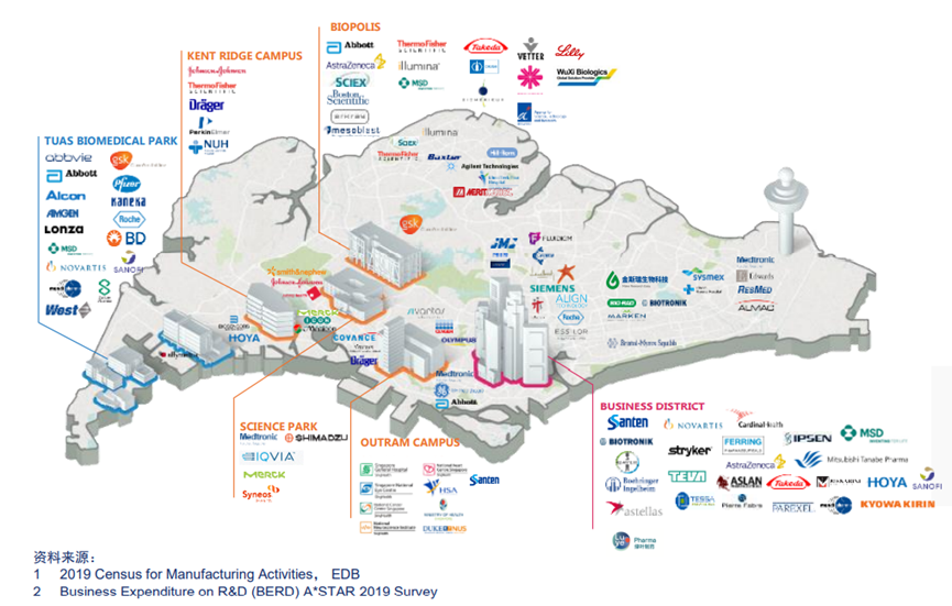与此同时,新加坡也吸引了众多实力雄厚的生物医药科技企业的入驻: