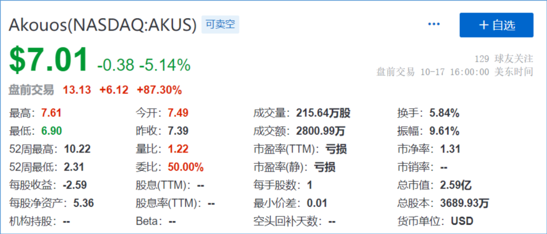 Akouos美股盘前暴涨近90%Akouos公司拥有哈佛医学院眼科教授Luk Vandenberghe博士开发的Ancestral AAV (AAVAnc)技术平台。其首个基因产品AK-OTOF目前处于临床开发阶段,用于治疗因耳铁蛋白otoferlin (OTOF)基因突变而导致的感觉神经性听力损失,公司其他的管线项目包括多种内耳疾病。