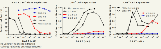 体外研究中,CD123 x CD3-V2 DART变体在体外介导急性髓系白血病细胞的耗竭。