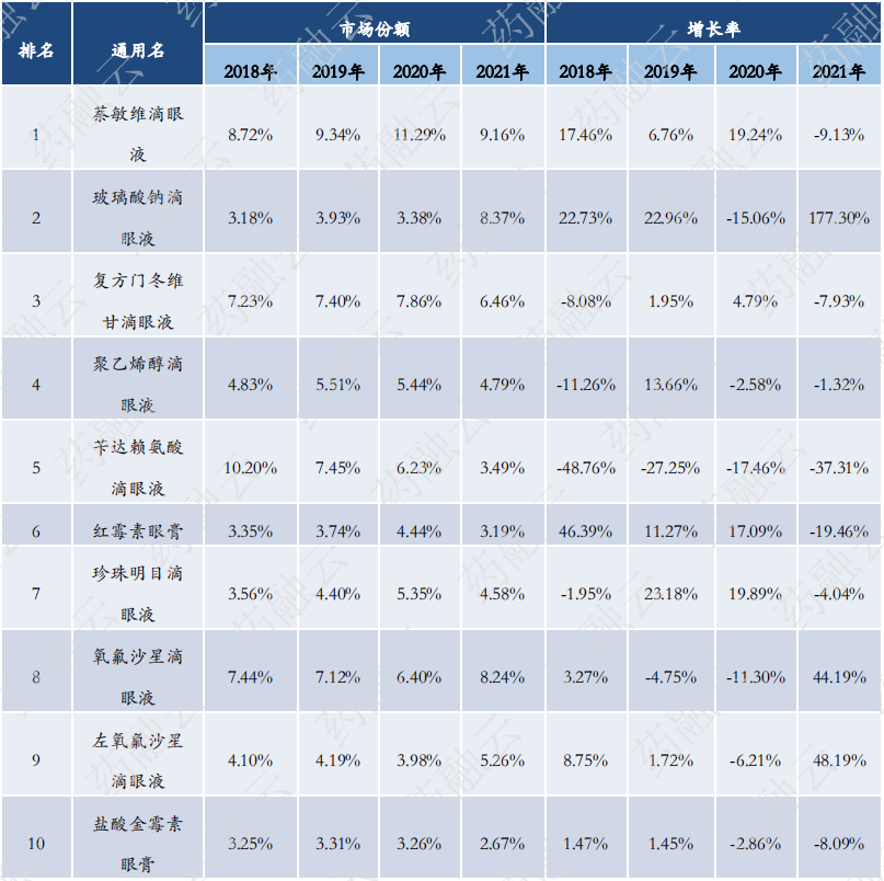 2021零售药店眼科用药竞争格局
