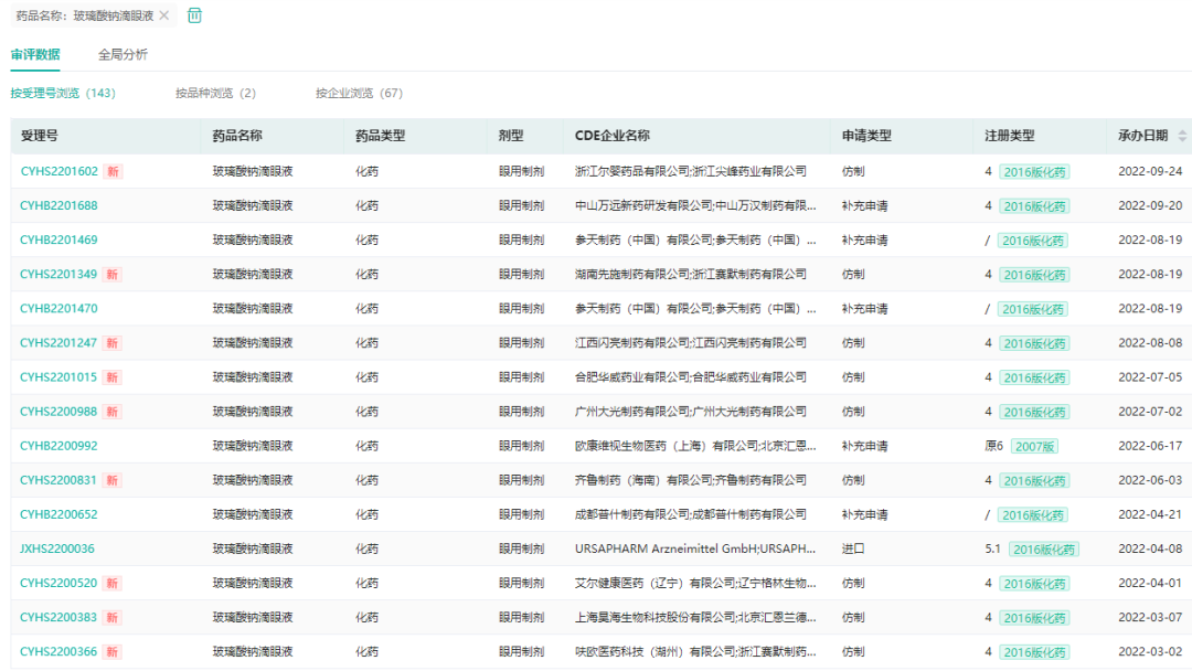 玻璃酸钠滴眼液审评情况(部分)