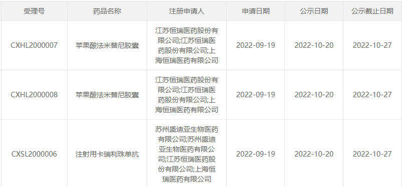近日,恒瑞创新药卡瑞利珠单抗联合法米替尼一线治疗肿瘤细胞PD-L1表达阳性[肿瘤比例评分(TPS)≥1%]且不伴有EGFR/ALK基因异常的复发性或转移性非小细胞肺癌被国家药品监督管理局药品审评中心拟纳入突破性治疗品种公示名单。