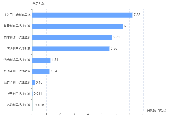 2022上半年PD-1药物院内销售额TOP10品种