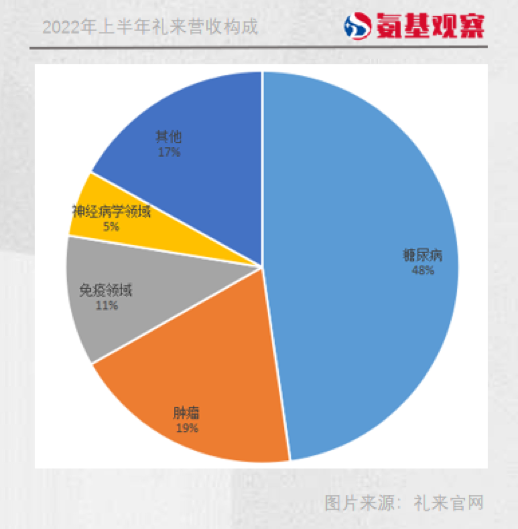 单从业绩来看,糖尿病是礼来的王牌业务,2022年上半年贡献68.26亿美元的收入,占半壁江山。