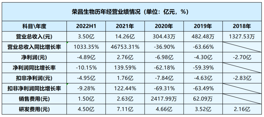 从往年业绩看,2018-2020年,荣昌生物实现总营收分别为1327.5万元、482.5万元、304.4万元,净利润分别为-2.7亿元、-4.3亿元、-6.98亿元,一直处于亏损状态。
