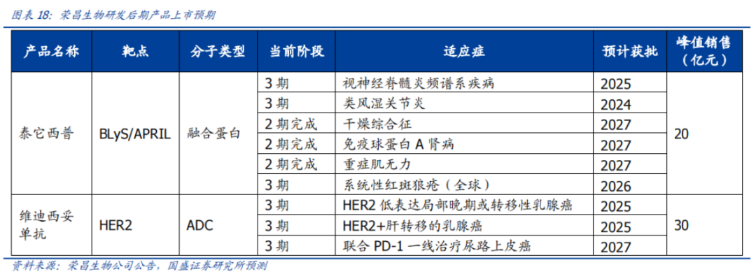 结语:纵观荣昌生物的研发管线不难看出,在2027年之前能获批上市并快速贡献业绩的产品,主要取决于泰它西普和维迪西妥单抗的新适应症拓展以及海外临床推进情况。