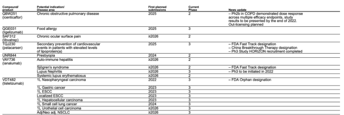 图片来源:诺华2022年三季报