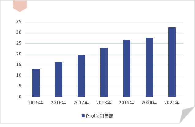 地舒单抗由安进研发,上市后销售额一路攀升,Proli 2021年全球销售额高达32.48亿美元。然而,地舒单抗于2020年6月才被NMPA批准用于治疗骨折高风险的绝经后妇女的OP,商品名为普罗力。