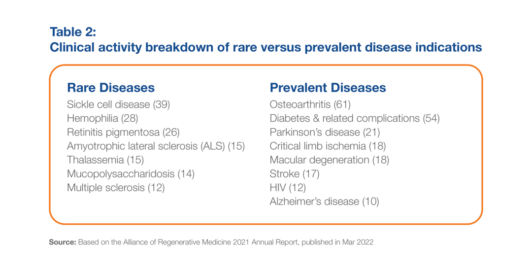 虽然该行业仍然积极开发包括血液病和眼疾在内的罕见疾病领域的先进疗法(包括基因疗法),但从整个先进疗法部门向更普遍的疾病转移的趋势越来越明显。