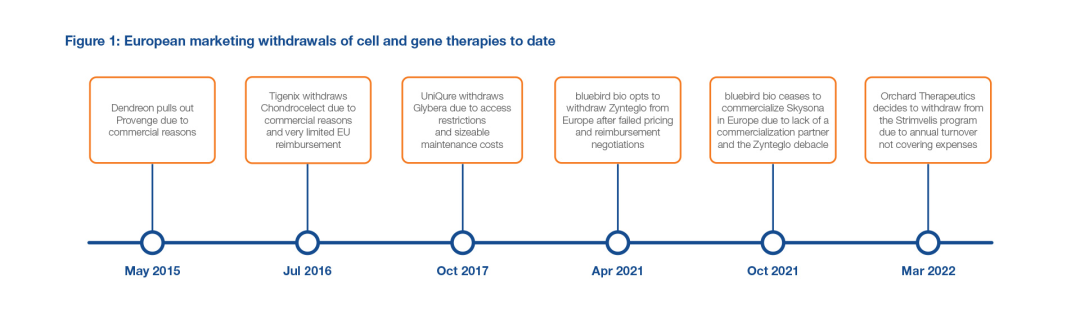 下图显示了细胞和基因治疗在欧洲市场开拓的曲折历史。