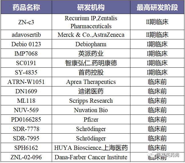 Wee1在许多癌症中高表达,据不完全统计,目前针对Wee1的在研药物十余种,包含抑制剂和PROTAC。