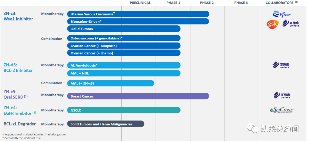 图片来源:ResearchGate关于ZentalisZentalis是一家临床阶段的生物制药公司,专注于发现和开发针对癌症基本生物学途径的小分子疗法。公司积极推进肿瘤学治疗多元化的管道, 2020年5月,在中国成立了合资企业正腾康生物(简称“Zentera”)。除了ZN-c3,Zentera还在中国开发和商业化肿瘤学候选药物ZN-d5和ZN-c5。