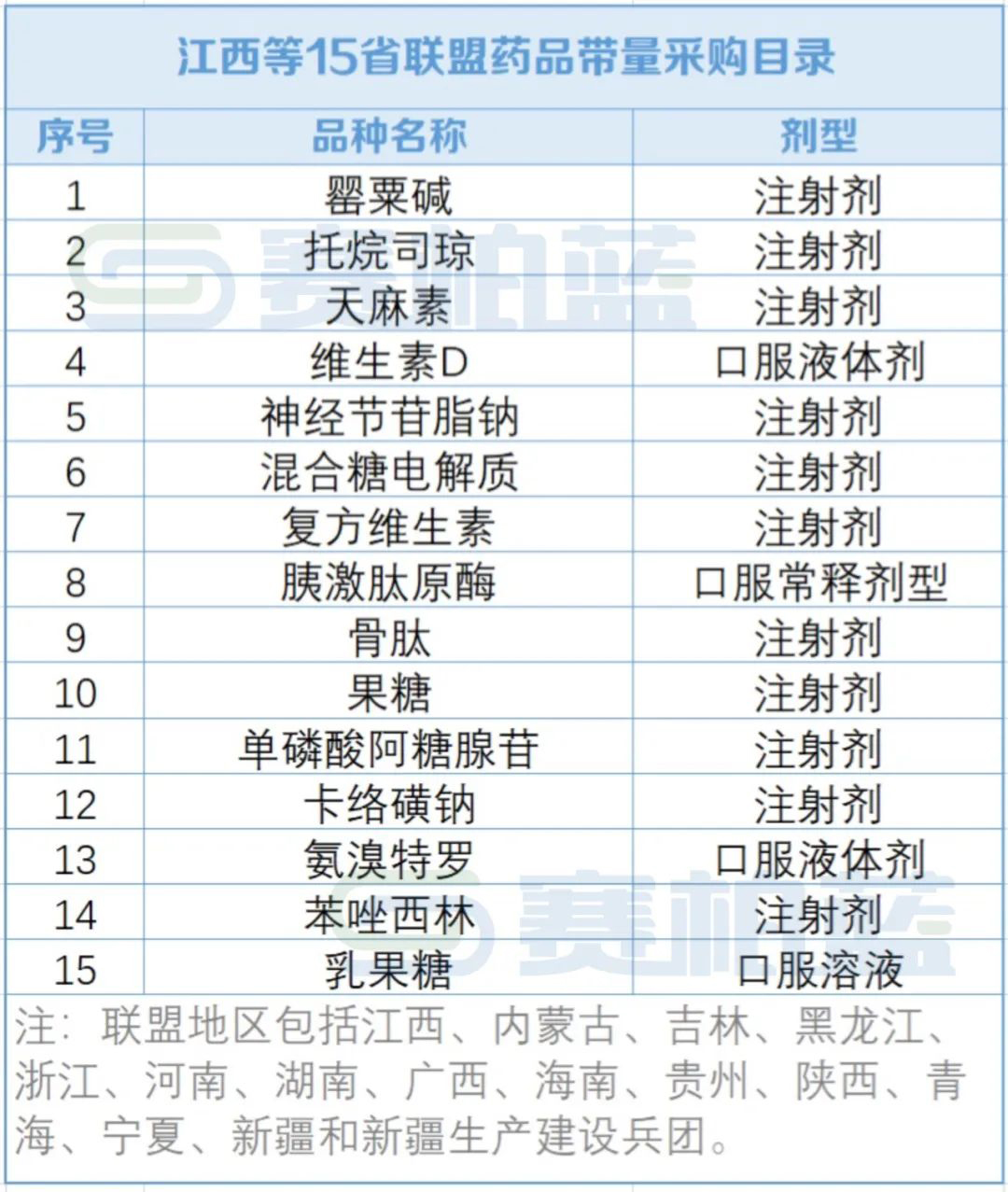 江西等15省联盟和河北省将分别对15个、51个品种进行带量采购,涉及苯唑西林、雷尼替丁、他克莫司、人生长激素等。