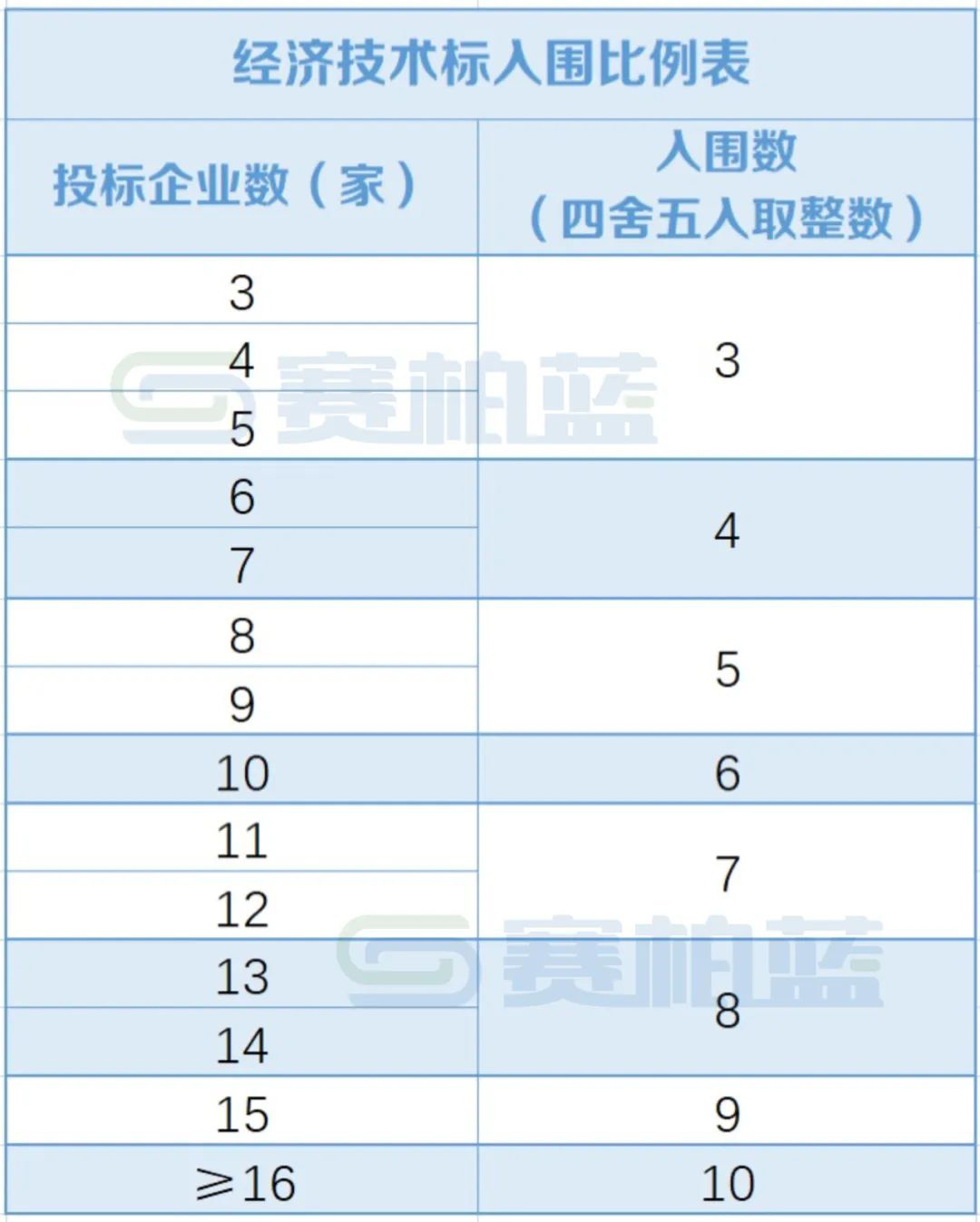 经济技术标根据得分从高到低排名,按下图比例入围进入商务标和综合评审。