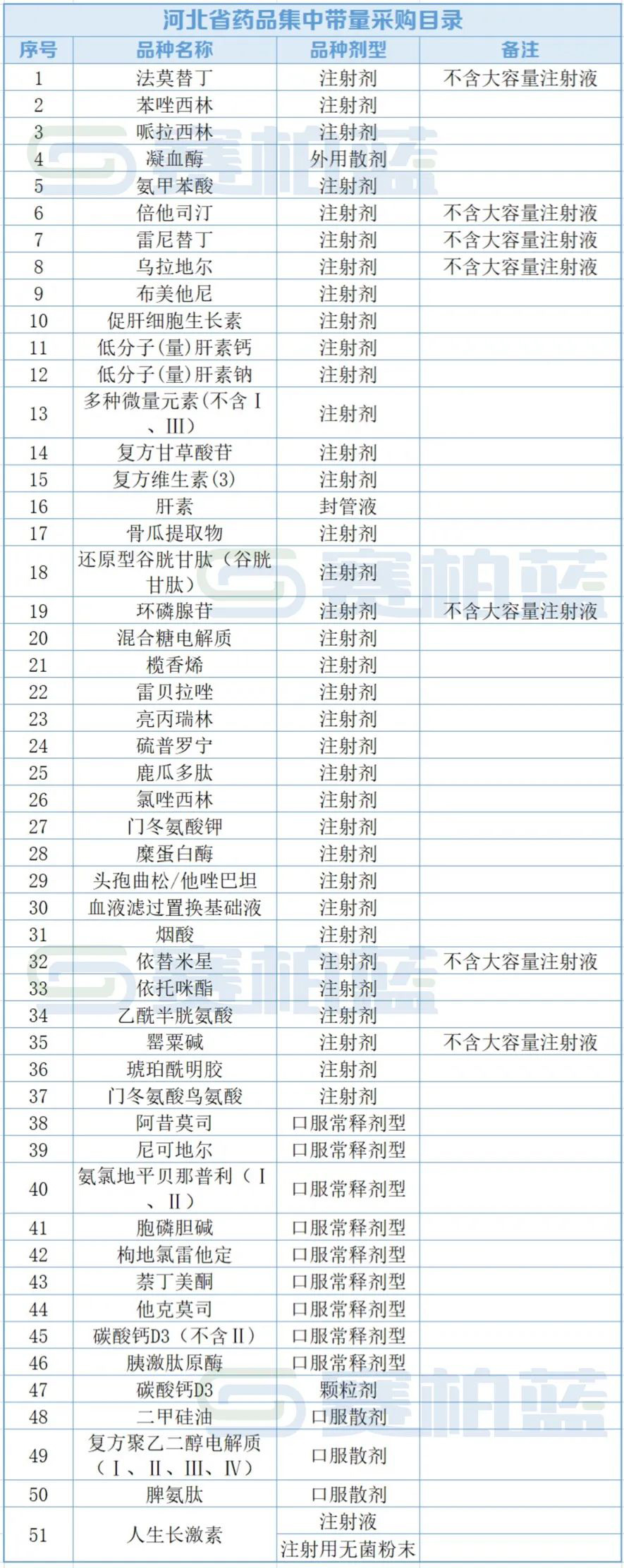 10月28日,河北省医保局发布《河北省化学药品、生物制剂集中带量采购文件(HBYPJC-2022-01)》的公告,开启对51种药品的集采,包括普通化学仿制药(原研药、参比制剂、通过一致性评价药品、视同通过一致性评价药品可自愿参加)和生物制剂(完整名单见文末)。