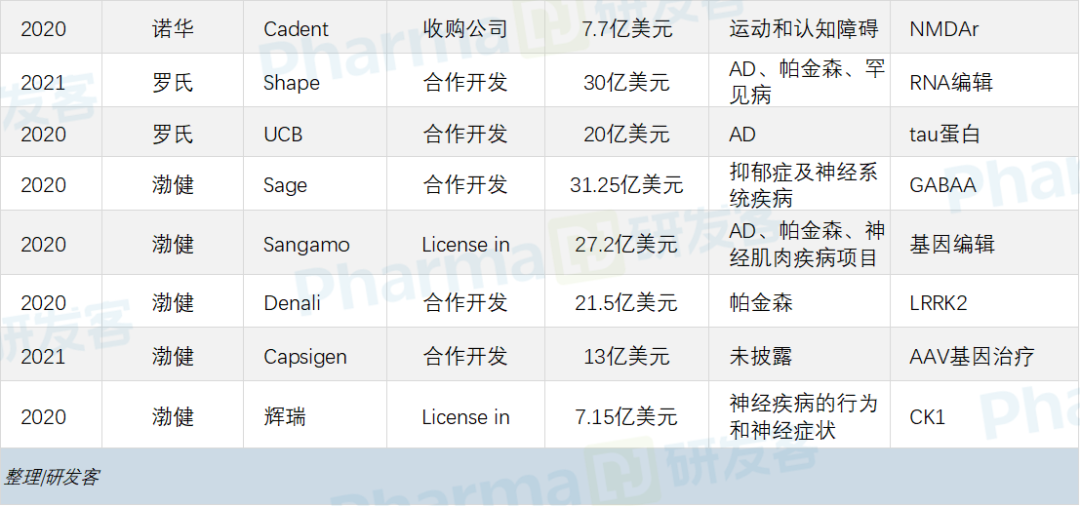 7项交易明确与AD或者神经退行性疾病相关。这依然是行业投入的主要方向。