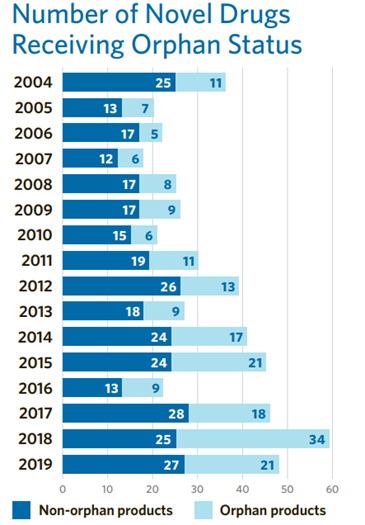 在世界各国监管机构提供的开发孤儿药的激励下,许多制药公司日益加大了对该类产品的投资热情。根据预测,从 2019 年到 2024 年,全球孤儿药市场将以约 12% 的复合年增长率 (CAGR) 增长,这个数字约为非孤儿药市场预测增长率的两倍。