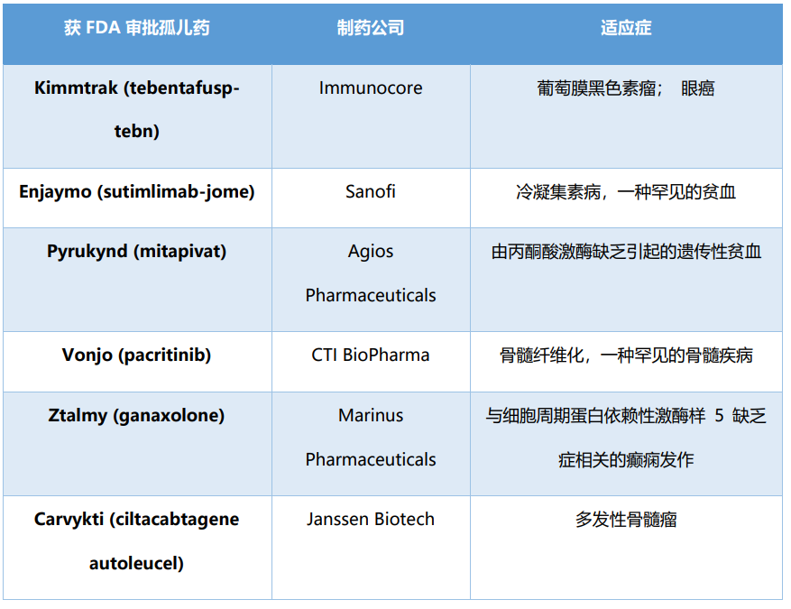 表2. FDA 2022年第一季度批准的孤儿药