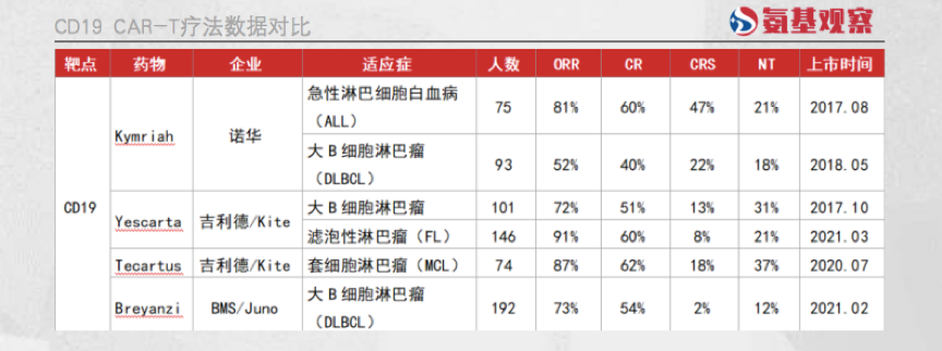 不仅是CD19,其它靶点的CAR-T疗法,入局者也都如过江之鲫。
