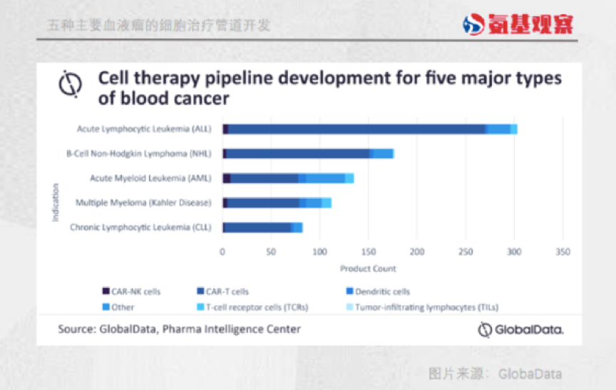就全球范围来看,CAR-T已经卷出天际。根据GlobalData 数据,目前有800多种针对血液瘤的细胞疗法处于临床阶段,其中绝大多数是CAR-T疗法。