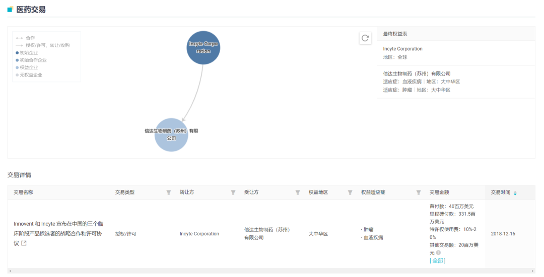 Parsaclisib 来源于信达 2018 年度与 Incyte 公司的合作。在该项合作中,信达生物获得了 3 款抗肿瘤药物在中国内地及港澳台地区的临床开发和商业化权益,而 Incyte 公司则获得信达生物的 4000 万美元首付款、首次递交 IND 申请后的第二笔 2000 万美元付款、潜在开发及监管里程碑款最高 1.29 亿美元和潜在商业里程碑 2.025 亿美元。