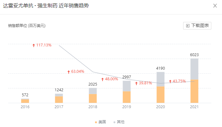 强生已经获批的四款多发性骨髓瘤药物中,CD38 单抗达雷妥尤单抗是 2021 年度全球销售 60.23 亿美元的超级重磅炸弹,且仍在以 43% 的高增速,势如破竹持续增长;CAR-T 疗法西达基奥仑赛尽管今年 2 月刚刚获批,但大有后来居上之势,Q3 单季度销售额就已经达到 5500 万美元,还在高速放量期。