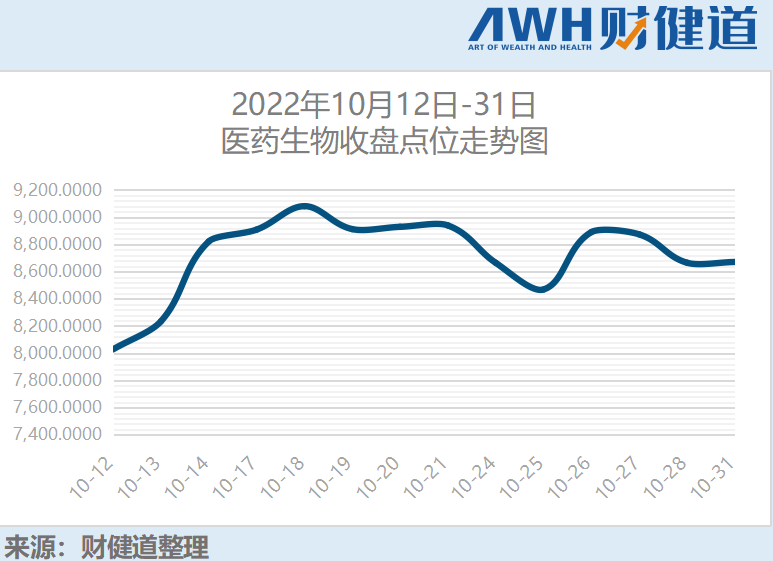 10月中旬以来,医药股的火热行情,绘就出一条整体向上的增长曲线。10月31日收盘,医药生物(申万)板块上涨4.82%。据财健道统计,医药生物(申万)板块从10月12日最低点7748.74一路上涨至10月31日的8670.85,一扫过去一年多的颓势。